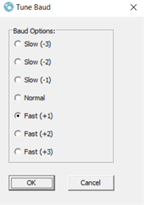 Select Settings > Communication > Baud Trim and select Fast (+1) and Press OK.