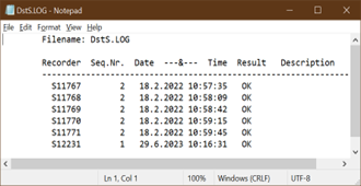 A summary of all the started loggers for that type can be seen in the *.LOG file. If the result is marked OK, the measurement setup worked. If there was an error when starting the logger, the fault description will follow.