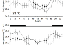 Fig. 1 shows the mean circadian body temperature pattern for the selected 72h, a) 23°C and b) 4°C used in the study.