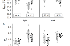 Fig. 4 from the article showing the difference in body temperature during the dark and light phases of the day. Tmean top and the coefficient of variation of body temperature below TCV.