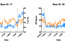 From fig. 1 showing Tb in orange and HR in blue for two bears, showing changes in both during pre-, post- and hibernation.